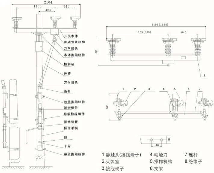 該開(kāi)關(guān)適用于額定電壓12kV以下、額定頻率50Hz的戶(hù)外三相交流電力配電系統(tǒng)切合負(fù)荷電流用。在分閘位置能滿(mǎn)足對(duì)隔離開(kāi)關(guān)規(guī)定的隔離要求。