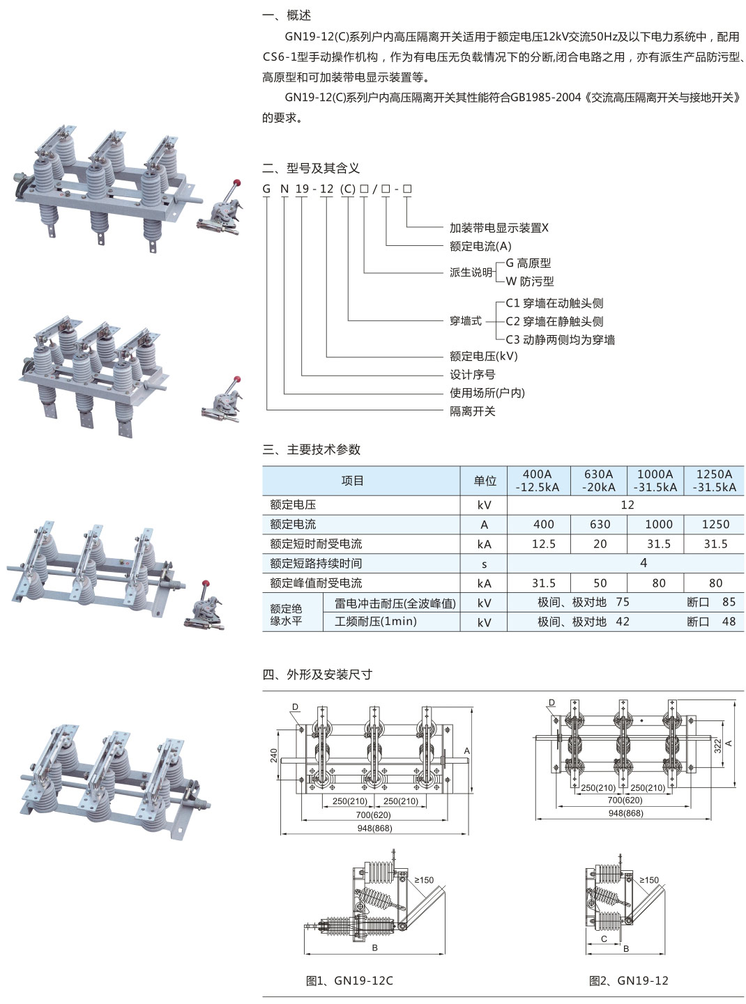 GN19-10(GN19-10C)系列戶內(nèi)高壓隔離開關(guān)參數(shù)表: