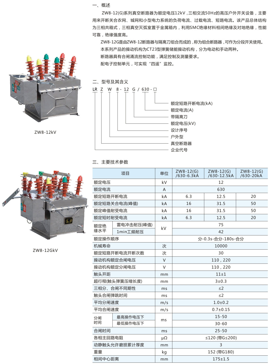 ZW8-12/630-20,ZW8-12/630-25,ZW8-12/1250-25,ZW8-12/1250-31.5
