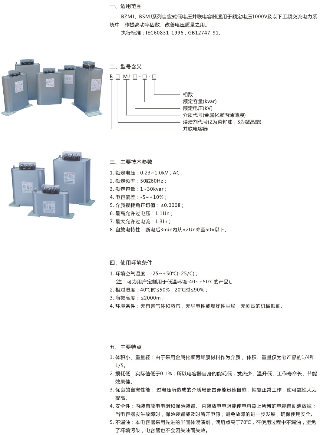 • BZMJ、BSMJ系列自愈式低電壓并聯(lián)電容器